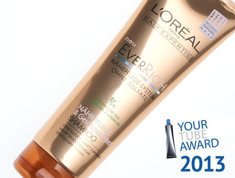 The ETMA (European Tube Manufacturers Association) jury awarded the expansion of the EverPure tube range, the "EverRiche" tube, the "Tube of the Year 2013" award in the laminated tube category. We were proud to have defended our 2012 title. It was a long road until the project came to a successful end. In particular, it was rather difficult to achieve L'Oréal's exact specifications for a gold-bronze background color. The quality of the finish and the printed seam impressed once again. We will of course make use of this success again in order to highlight our competence in tube finishing to our customer base.